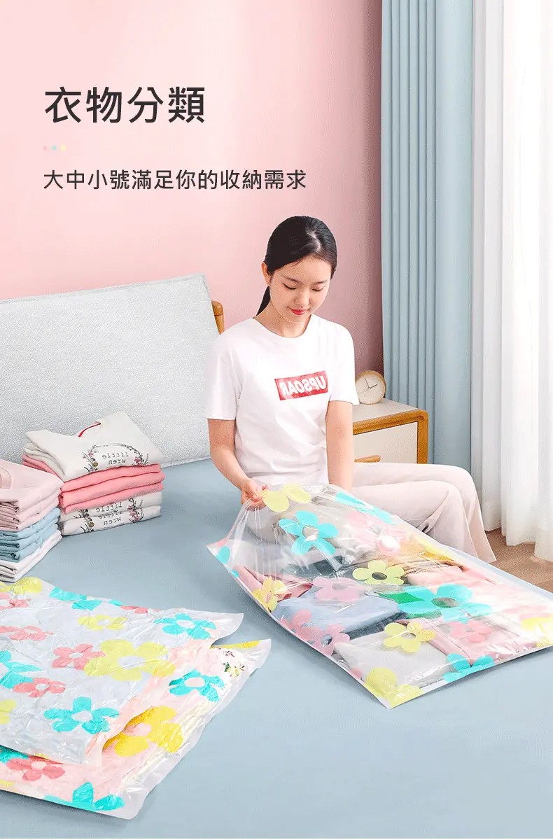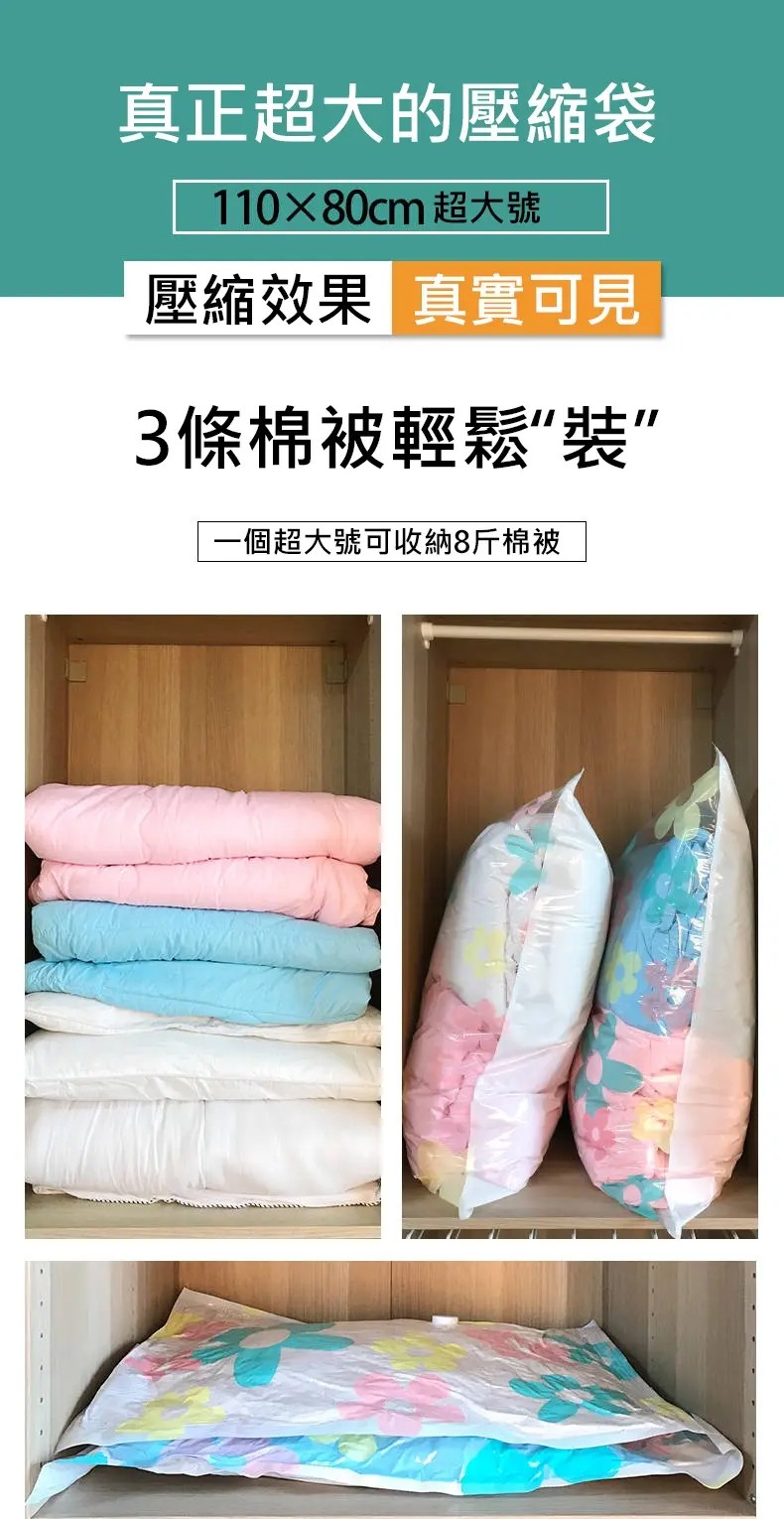 5分鐘前掛式真空壓縮袋推薦,輕鬆節省衣櫃空間 - 【買3送3】尺寸任選★贈電動抽氣機★ NT$999